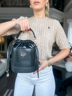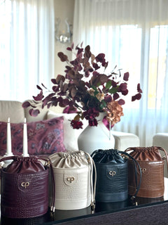 Handgefertigt aus veganem Leder und kombiniert mit edlem Struktur-Design, verbindet sie Nachhaltigkeit mit modernem Chic.
