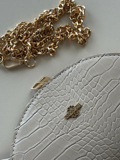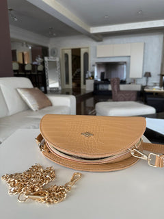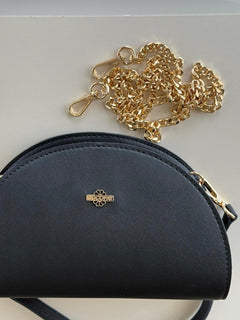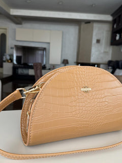 Die Tasche NOOR überzeugt durch ihre einzigartige, halbrunde Silhouette – ein moderner Blickfang, der zugleich zeitlos und elegant wirkt. Diese besondere Form verleiht ihr eine stilvolle Leichtigkeit, die sie sowohl zur perfekten Abendtasche als auch zum stilvollen Alltagsbegleiter macht.